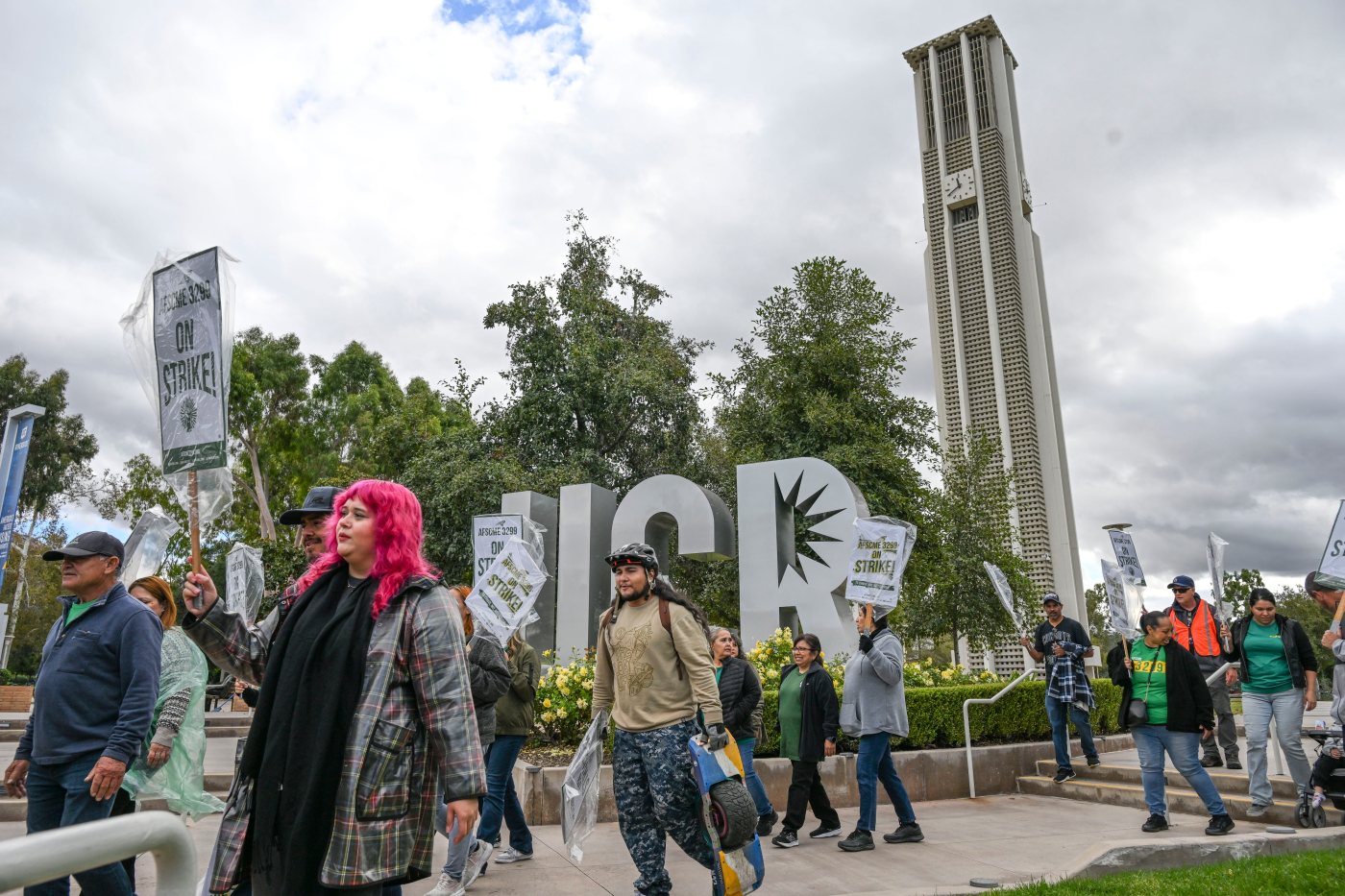 “We are fighting for our contract now,” said Jeanette Obeji, a service worker with UC Riverside for six years, who was walking the picket line Monday. “Two of our sister unions have actually already gotten their contracts. I’m hopeful we’ll get one.”