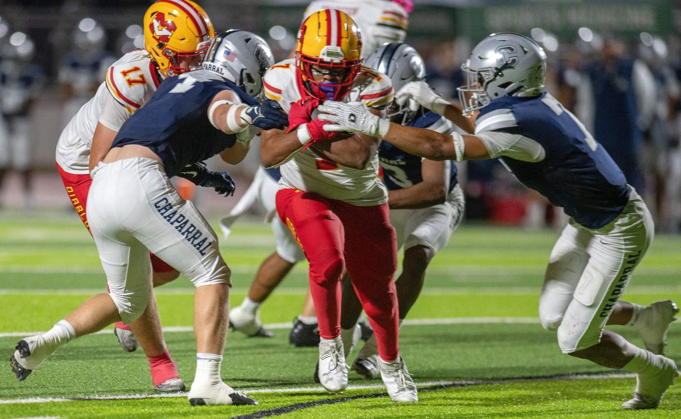 The Diablos went to Temecula last week for a 36-21 win over Chapparal. Luke Fahey completed 15 passes (to six different receivers) on 23 attempts for 223 yards and three touchdowns. Davonte Curtis rushed for 97 yards. Mission Viejo has a home game against Long Beach Poly on Friday.