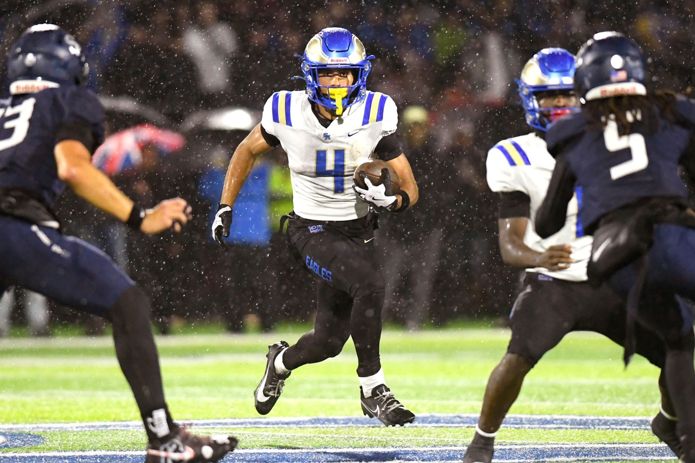 The Eagles beat previously-undefeated Sierra Canyon 21-9. Santa Margarita junior defensive tackle Isaia Vandermade had seven total tackles, including three sacks, and he forced a fumble. Sophomore receiver Ryan Clark caught two touchdown passes from Trace Johnson. Santa Margarita plays Orange Lutheran in the semifinals Friday at Orange Coast College.