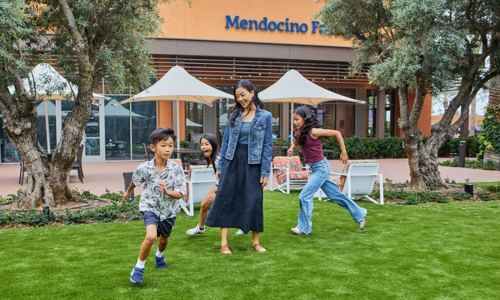 “We love Mendocino Farms,” Ray says, while the kids – Natalie, Maddie and Alexander – eye the menu at Handel’s Homemade Ice Cream. Both spots are now open, as is BLK Dot Coffee, set between the two. The new apartments next door caught their mother’s attention. “It’s so nice that the residents there will be able to walk to everything,” says Jenny, a physician at Kaiser Permanente in Irvine.