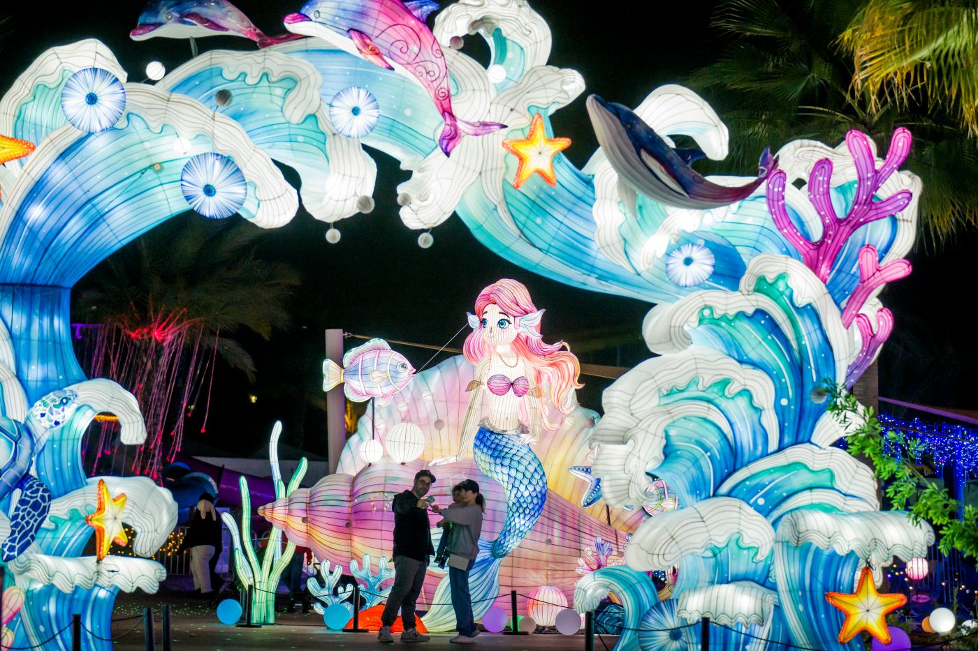 A family takes a selfie in the “Under the Sea,” lantern and light display at the Dream Glow Festival at Wild Rivers Waterpark in Irvine on Friday, January 2, 2026. The Dream Glow Festival has been extended through January 10. (Photo by Leonard Ortiz, Orange County Register/SCNG)